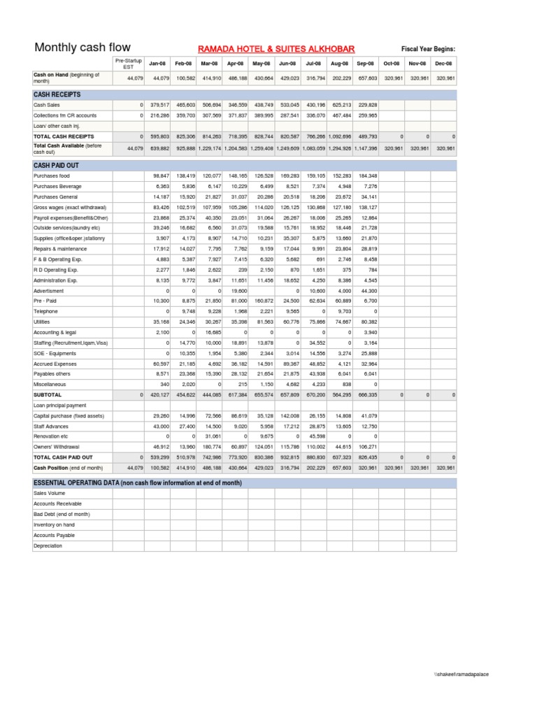 Simple Monthly Cash Flow Statement Template