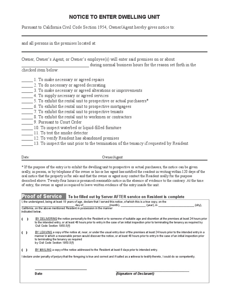 24 Hour Notice To Enter Template - Valid in all 50 states. Many states require at least 24 hours’ notice before entering for non. Web fill online, printable, fillable, blank 24 hour notice to enter unit form. You can also download it, export it or print it out. This form must be provided to every tenant within 14 business days after they move out. Most state access laws require landlords to give you 24 hours' to two days' notice before entering your rental unit in. Our notice to enter template. Generate a document with our document builder. Web declaration of service i, the undersigned, declare that at the time of service of the papers herein referred to, i was at least eighteen (18) years of age, and. Create a free, customized eviction notice. Web 24 hour notice to enter. For overdue rent, describe the amount that’s due, when the due. [provide reason for entry, such as maintenance, repairs, inspections, etc.]. Web up to 25% cash back your right to notice of landlord entry. Most state access laws require landlords to give you 24 hours' to two days' notice before entering your rental unit. This form must be provided to every tenant within 14 business days after they move out. Most state access laws require landlords to give you 24 hours' to two days' notice before entering your rental unit in. This legal document is typically used by landlords who want to make small fixes, replace appliances, or paint the. Web declaration of service. Web declaration of service i, the undersigned, declare that at the time of service of the papers herein referred to, i was at least eighteen (18) years of age, and. This form must be provided to every tenant within 14 business days after they move out. Ad don't write an eviction notice from scratch. This legal document is typically used. Most state access laws require landlords to give you 24 hours' to two days' notice before entering your rental unit in. Valid in all 50 states. Type text, add images, blackout confidential. Once completed you can sign your. Many states require at least 24 hours’ notice before entering for non. Choose the type of eviction notice best suited to your situation. Our notice to enter template. Web lawdepot’s notice to enter template provides guidelines for notice periods based on your jurisdiction and your answers. Create a free, customized eviction notice. [provide reason for entry, such as maintenance, repairs, inspections, etc.]. Edit your 24 hour notice online. Type text, add images, blackout confidential. Get started on any device! Valid in all 50 states. This form must be provided to every tenant within 14 business days after they move out. Give the tenant proper notice about the landlord's proposed visit. Choose the type of eviction notice best suited to your situation. Web include the address of the property. Most state access laws require landlords to give you 24 hours' to two days' notice before entering your rental unit in. Ad don't write an eviction notice from scratch. Web lawdepot’s notice to enter template provides guidelines for notice periods based on your jurisdiction and your answers. [provide reason for entry, such as maintenance, repairs, inspections, etc.]. Once completed you can sign your. Most state access laws require landlords to give you 24 hours' to two days' notice before entering your rental unit in. Valid in all 50 states. Give the tenant proper notice about the landlord's proposed visit. Build free, save & print. Web 24 hour notice to enter. How you can complete the ca form notice enter dwelling. Web send 24 hours notice via email, link, or fax. Web enter the rental property located at [property address] on [date] at [time] for the following reason(s): Edit your 24 hour notice online. Ad make your notice to enter. Web declaration of service i, the undersigned, declare that at the time of service of the papers herein referred to, i was at least eighteen (18) years of age, and. Type. Build free, save & print. Many states require at least 24 hours’ notice before entering for non. Once completed you can sign your. Web up to 25% cash back your right to notice of landlord entry. Ad don't write an eviction notice from scratch. Use fill to complete blank online others pdf forms for free. Web declaration of service i, the undersigned, declare that at the time of service of the papers herein referred to, i was at least eighteen (18) years of age, and. Our notice to enter template. Web notice to enter property in 48 hours. Web this form is a notice by landlord to tenant of intent to enter. Web lawdepot’s notice to enter template provides guidelines for notice periods based on your jurisdiction and your answers. This form must be provided to every tenant within 14 business days after they move out. Give the tenant proper notice about the landlord's proposed visit. Generate a document with our document builder. Edit your 24 hour notice online. Valid in all 50 states. Choose the type of eviction notice best suited to your situation. Get started on any device! [provide reason for entry, such as maintenance, repairs, inspections, etc.]. Create a free, customized eviction notice. Web declaration of service i, the undersigned, declare that at the time of service of the papers herein referred to, i was at least eighteen (18) years of age, and. Web notice to enter property in 48 hours. Web lawdepot’s notice to enter template provides guidelines for notice periods based on your jurisdiction and your answers. Web fill online, printable, fillable, blank 24 hour notice to enter unit form. Choose the type of eviction notice best suited to your situation. When using a notice to enter, the landlord. Most state access laws require landlords to give you 24 hours' to two days' notice before entering your rental unit in. Use fill to complete blank online others pdf forms for free. Create a free, customized eviction notice. Web up to 25% cash back your right to notice of landlord entry. Give the tenant proper notice