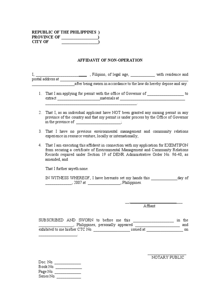 Affidavit of NonOperation