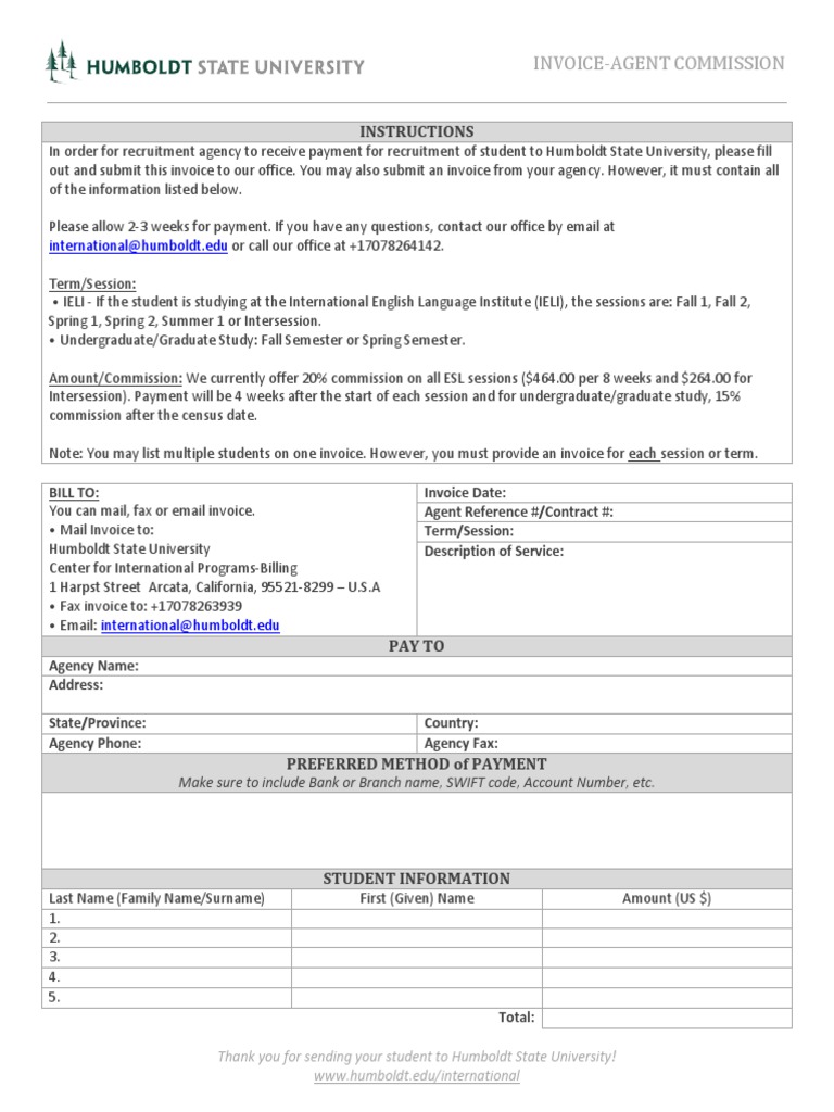 Agent Commission Invoice Template