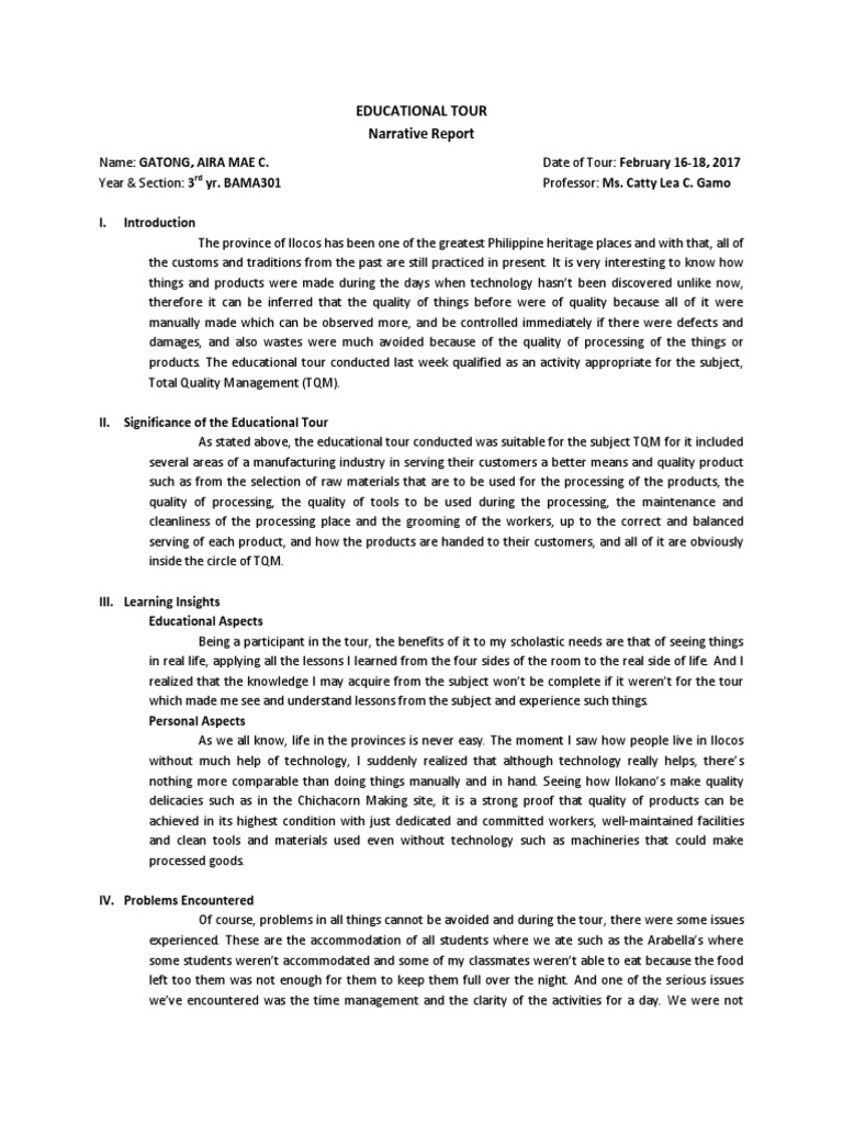 Educational Tour Narrative Report Business Free 30day Trial Scribd