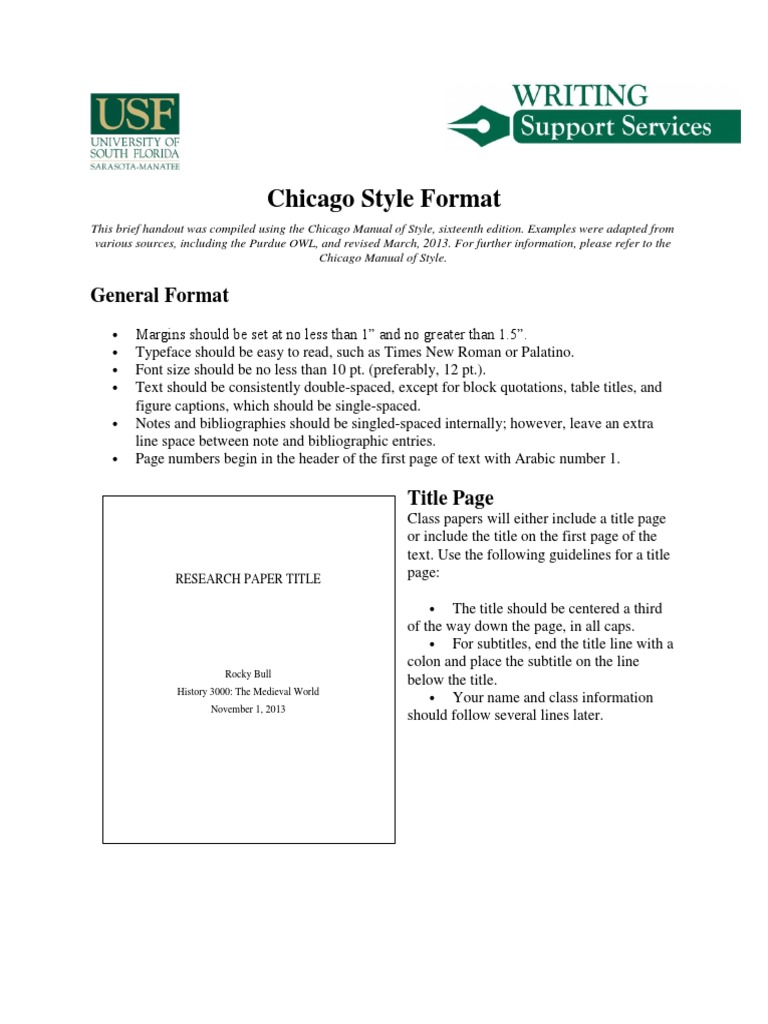 The Formatting Guidelines Listed On This Page, Provide General Best Practices For Formatting Your Work Using The Chicago Style.