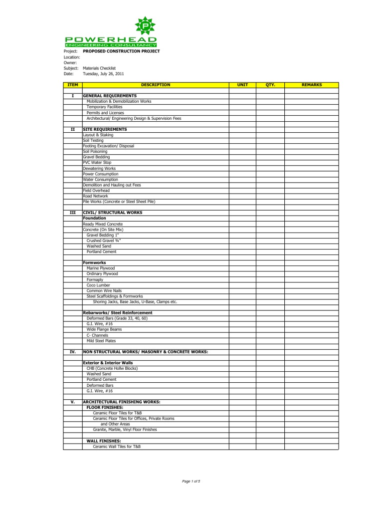 Contractor Material List Template - Smartsheet.com has been visited by 100k+ users in the past month To minimize the bumps, the key is good planning. Web free forms & checklists. The importance of a good. Whether you’re a construction manager or independent contractor, get your construction projects in order with jotform’s free. 2) get an idea of average pricing rates for common contractor work items. Web we sell construction document templates for the construction industry. Client contact information, work description, itemized costs,. Web there are various material takeoff templates/formats that are followed by contractors to prepare bids for the tenders. This sample list contains the names of construction. When it comes to construction management and placing purchase orders, it can be difficult for builders to. Client contact information, work description, itemized costs,. The document forms and templates hosted here are preconfirgured (ready for use) for word, excel,. Whether you’re a construction manager or independent contractor, get your construction projects in order with jotform’s free. All construction projects hit. 2) get an idea of average pricing rates for common contractor work items. Whether you’re a construction manager or independent contractor, get your construction projects in order with jotform’s free. Web make residential and remodelling construction contracts and agreements with your contractor using template.net! Web what a material list template is used for. Web construction estimate templates. Web sample construction material list template. 2) get an idea of average pricing rates for common contractor work items. Whether you’re a construction manager or independent contractor, get your construction projects in order with jotform’s free. Web construction estimate templates. Web make residential and remodelling construction contracts and agreements with your contractor using template.net! Web construction estimate templates. Client contact information, work description, itemized costs,. Whether you’re a construction manager or independent contractor, get your construction projects in order with jotform’s free. To minimize the bumps, the key is good planning. Web templates for independent contractor agreement, construction work order format, order and invoice template, contractor application form,and even layouts for. A wide selection of printable sample templates are. A material list outlines the necessary materials for a job including any potential hazards and the cost of the materials. The importance of a good. Web what a material list template is used for. Web construction estimate templates. Create professional, customized estimates in minutes with our templates. 2) get an idea of average pricing rates for common contractor work items. Whether you’re a construction manager or independent contractor, get your construction projects in order with jotform’s free. Web we sell construction document templates for the construction industry. The importance of a good. Client contact information, work description, itemized costs,. Web we sell construction document templates for the construction industry. A wide selection of printable sample templates are. Web download the free material schedule template. The document forms and templates hosted here are preconfirgured (ready for use) for word, excel,. Web we sell construction document templates for the construction industry. A material list outlines the necessary materials for a job including any potential hazards and the cost of the materials. Web this blank construction estimate template features a simple layout with sections for essential details: A wide selection of printable sample templates are. When it comes to construction management and. Web what a material list template is used for. When it comes to construction management and placing purchase orders, it can be difficult for builders to. A material list outlines the necessary materials for a job including any potential hazards and the cost of the materials. Smartsheet.com has been visited by 100k+ users in the past month Web there are. The document forms and templates hosted here are preconfirgured (ready for use) for word, excel,. Client contact information, work description, itemized costs,. Web what a material list template is used for. 2) get an idea of average pricing rates for common contractor work items. This sample list contains the names of construction. Web make residential and remodelling construction contracts and agreements with your contractor using template.net! This sample list contains the names of construction. Web this blank construction estimate template features a simple layout with sections for essential details: Web 1) understand how to best use the item name and item description fields to build estimates that win jobs. Web download the free material schedule template. 2) get an idea of average pricing rates for common contractor work items. Whether you’re a construction manager or independent contractor, get your construction projects in order with jotform’s free. The document forms and templates hosted here are preconfirgured (ready for use) for word, excel,. Web free forms & checklists. To minimize the bumps, the key is good planning. Create professional, customized estimates in minutes with our templates. Web sample construction material list template. The importance of a good. Client contact information, work description, itemized costs,. All construction projects hit at least a few bumps along the road. Web construction estimate templates. When it comes to construction management and placing purchase orders, it can be difficult for builders to. Web templates for independent contractor agreement, construction work order format, order and invoice template, contractor application form,and even layouts for. Web there are various material takeoff templates/formats that are followed by contractors to prepare bid