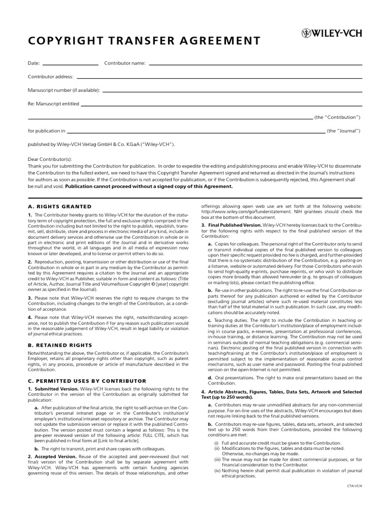 Copyright Transfer Agreement PDF Copyright John Wiley & Sons