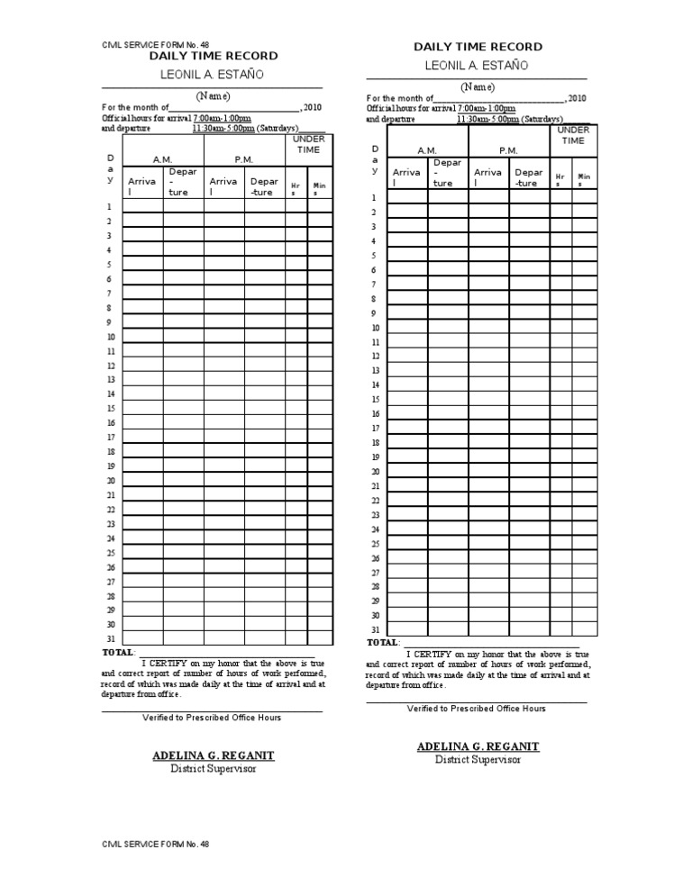Form 48 Daily Time Record
