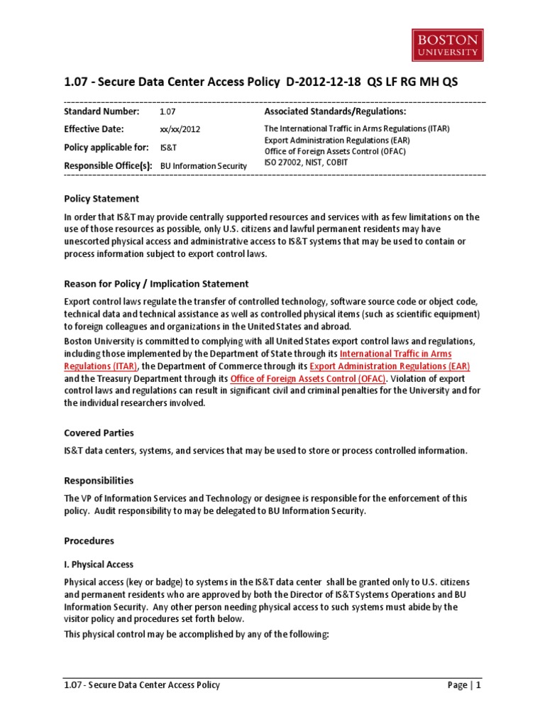 1.07 Secure Data Center Access Policy Exports Government Information