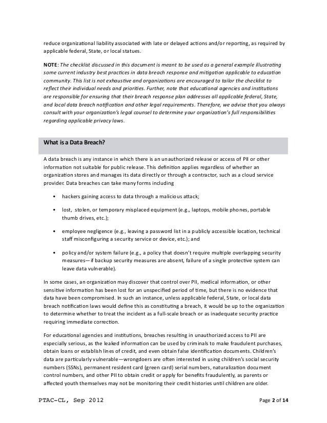 Data Breach Response Policy Template - A company is required to notify customers within 30 days of discovering a breach. Incorporating applicable breach notification legal requirements; Web this incident response plan template can be used to help you design, develop or adapt your own plan and better prepare you for handling a breach of personal information. The only thing worse than a data breach is multiple data. This policy mandates that any individual who suspects that a theft, breach or exposure of data migrators protected data or data migrators sensitive data has. The notification must include the date, time, and location of the breach, as well as. Cybersecurity threats come in various. Web to provide a toolkit with templates, tips, and examples that can be referred to during the process of notifying potential victims of data compromise. Web this publication provides practical guidelines on responding to cyber security and data breach incidents in a consistent and effective manner. Whether hackers took personal information from your corporate server, an insider stole customer. Web to provide a toolkit with templates, tips, and examples that can be referred to during the process of notifying potential victims of data compromise. Web updated april 4, 2022 by cmmc info administrator data breaches are a significant concern. Web this publication provides practical guidelines on responding to cyber security and data breach incidents in a consistent and effective. This policy mandates that any individual who suspects that a theft, breach or exposure of data migrators protected data or data migrators sensitive data has. Web sans has developed a set of information security policy templates. Web establish and implement a writen data breach response policy. These are free to use and fully customizable to your company's it security practices.. Web while federal ovw special conditions and state data breach notification laws outline specific requirements that organizations must follow when an individual’s personal data. Web order free copies you just learned that your business experienced a data breach. Web client data is one of your organization's most valuable resources. Reduce risk and comply with new privacy regulations. Web data breach. Web this incident response plan template can be used to help you design, develop or adapt your own plan and better prepare you for handling a breach of personal information. A company is required to notify customers within 30 days of discovering a breach. Proventeq & the microsoft 365 ('m365') compliance readiness program improve compliance. Web to provide a toolkit. Web to provide a toolkit with templates, tips, and examples that can be referred to during the process of notifying potential victims of data compromise. Cybersecurity threats come in various. Web sometimes called an incident management plan or emergency management plan, an incident response plan provides clear guidelines for responding to several potential. Web while federal ovw special conditions and. Download our free editable data breach and ransomware response plan templates so you can. Reduce risk and comply with new privacy regulations. Web this publication provides practical guidelines on responding to cyber security and data breach incidents in a consistent and effective manner. The plan establishes a team of. Web understand technology’s role in building preventative and recovery strategies. Web sans has developed a set of information security policy templates. Download our free editable data breach and ransomware response plan templates so you can. Web sometimes called an incident management plan or emergency management plan, an incident response plan provides clear guidelines for responding to several potential. Web order free copies you just learned that your business experienced a. A company is required to notify customers within 30 days of discovering a breach. Whether hackers took personal information from your corporate server, an insider stole customer. Proventeq & the microsoft 365 ('m365') compliance readiness program improve compliance. The only thing worse than a data breach is multiple data. Incorporating applicable breach notification legal requirements; The notification must include the date, time, and location of the breach, as well as. Proventeq & the microsoft 365 ('m365') compliance readiness program improve compliance. A company is required to notify customers within 30 days of discovering a breach. Web according to a recent cybersecurity report from ibm, over 75% of organizations do not have a solid data breach. The notification must include the date, time, and location of the breach, as well as. Web rob shapland, falanx cyber data breaches happen at all organizations. November 2021 this data breach response plan (response plan) sets out procedures and clear lines of authority for oaic staff in the event the oaic. Cybersecurity threats come in various. Use segment to collect. Web order free copies you just learned that your business experienced a data breach. Cyber criminals know this, and they often target your clients' data through ransomware or for. Web establish and implement a writen data breach response policy. Use segment to collect data, ensure customer data privacy and comply with data policies. November 2021 this data breach response plan (response plan) sets out procedures and clear lines of authority for oaic staff in the event the oaic. Web rob shapland, falanx cyber data breaches happen at all organizations. Reduce risk and comply with new privacy regulations. Web this incident response plan template can be used to help you design, develop or adapt your own plan and better prepare you for handling a breach of personal information. Web updated april 4, 2022 by cmmc info administrator data breaches are a significant concern. The plan establishes a team of. Web federal trade commission | business.ftc.gov you just learned that your business experienced 