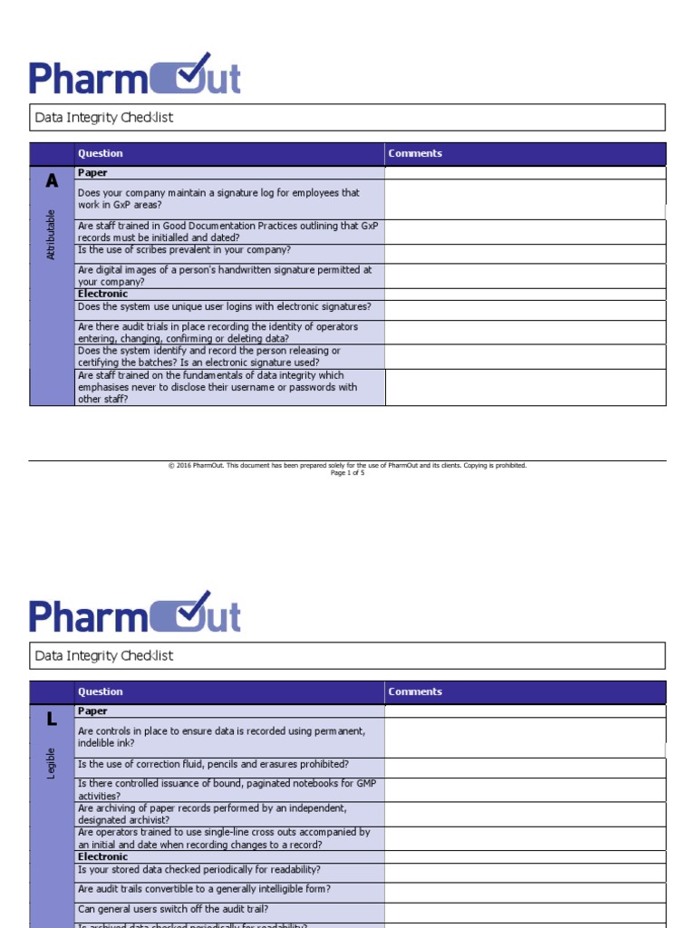 Data Integrity Checklist PDF Signature Accuracy And Precision