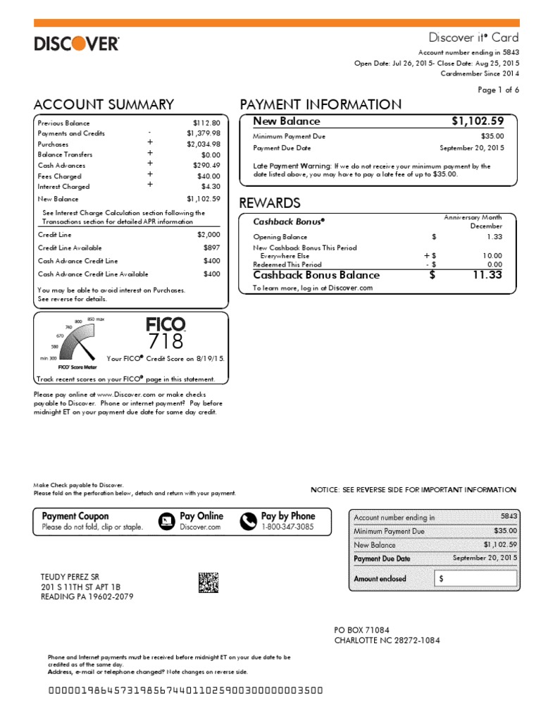 Discover Credit Card Statement Credit card statement, Discover credit