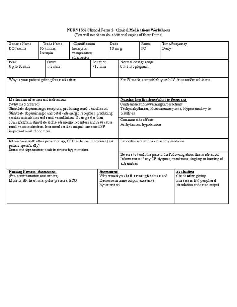 Dopamine drug administration card Pharmacology Nursing Pinterest