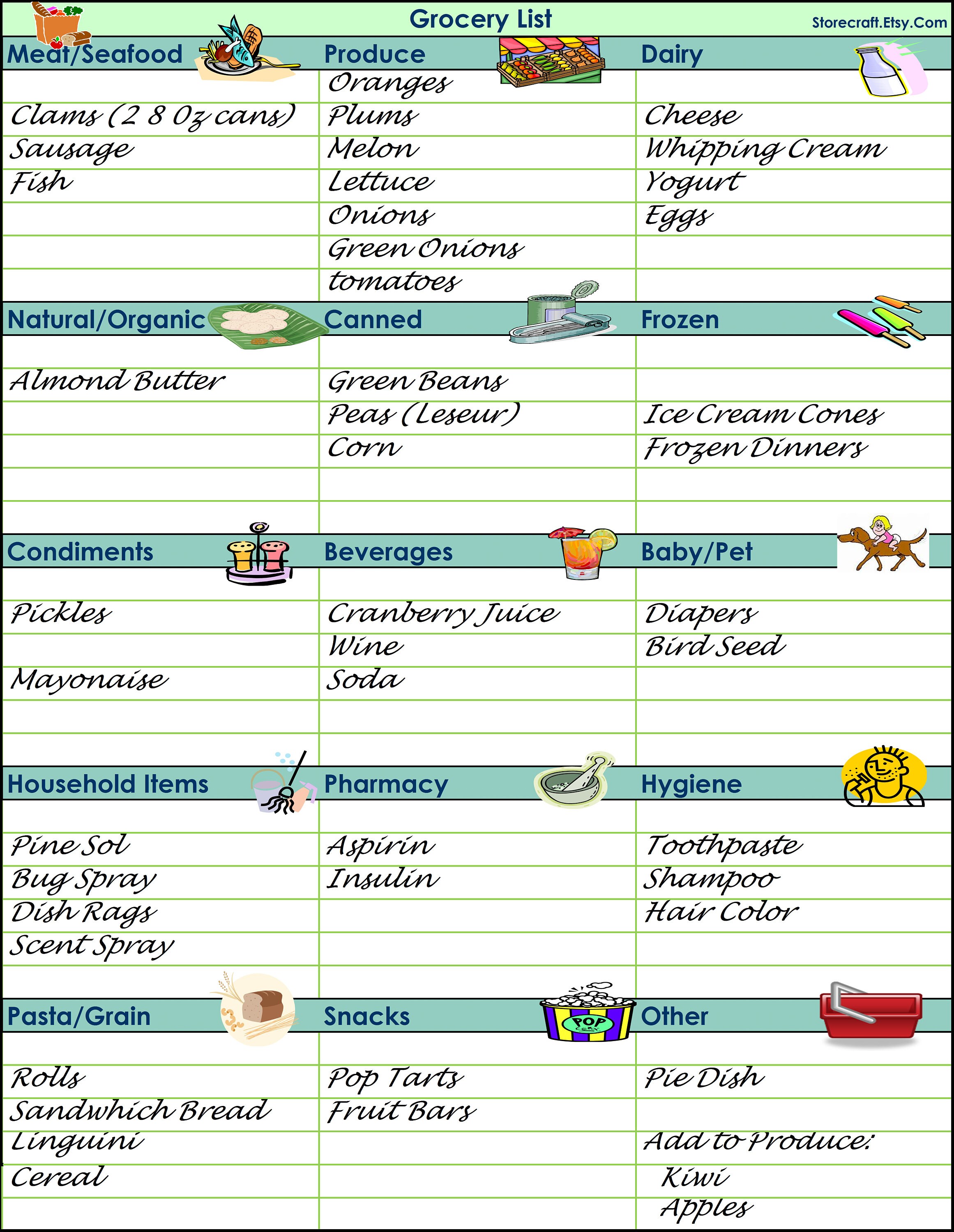 Grocery list Etsy in 2021 Grocery store list, Grocery list