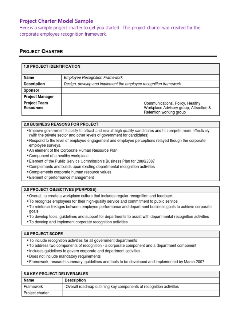 Project Charter Template Free Download Ppt Printable Form, Templates