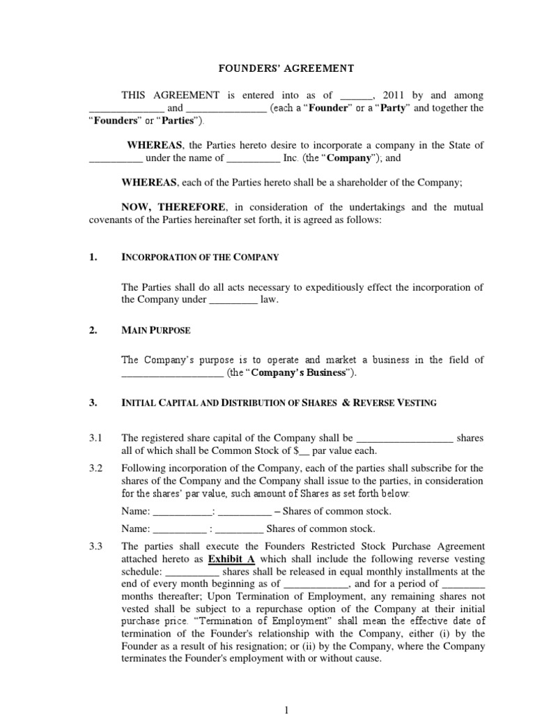 Free 22 Great Founders Agreement Tramples For Any Startup ᐅ Co Founder