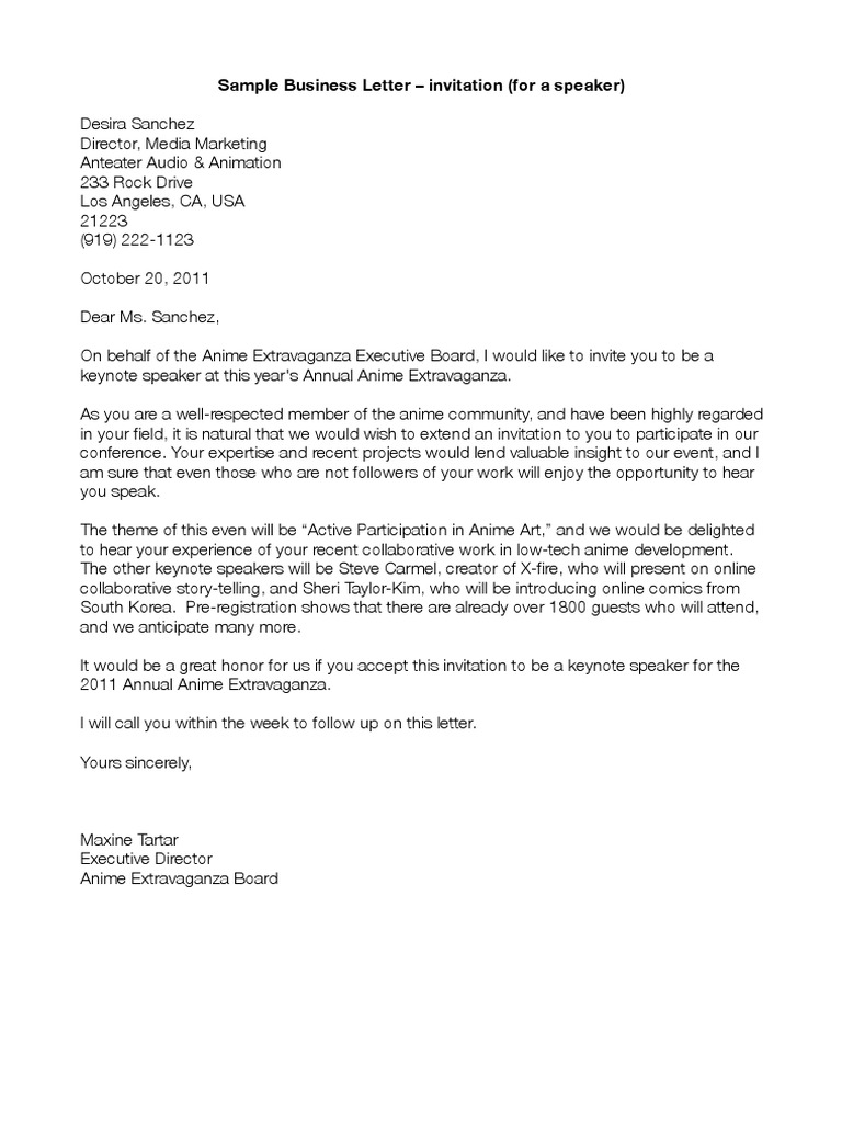 Business Letter For Inviting A Guest Speaker