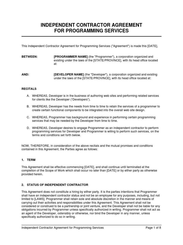 Free Independent Contractor Agreement Template 1099 Word PDF eForms