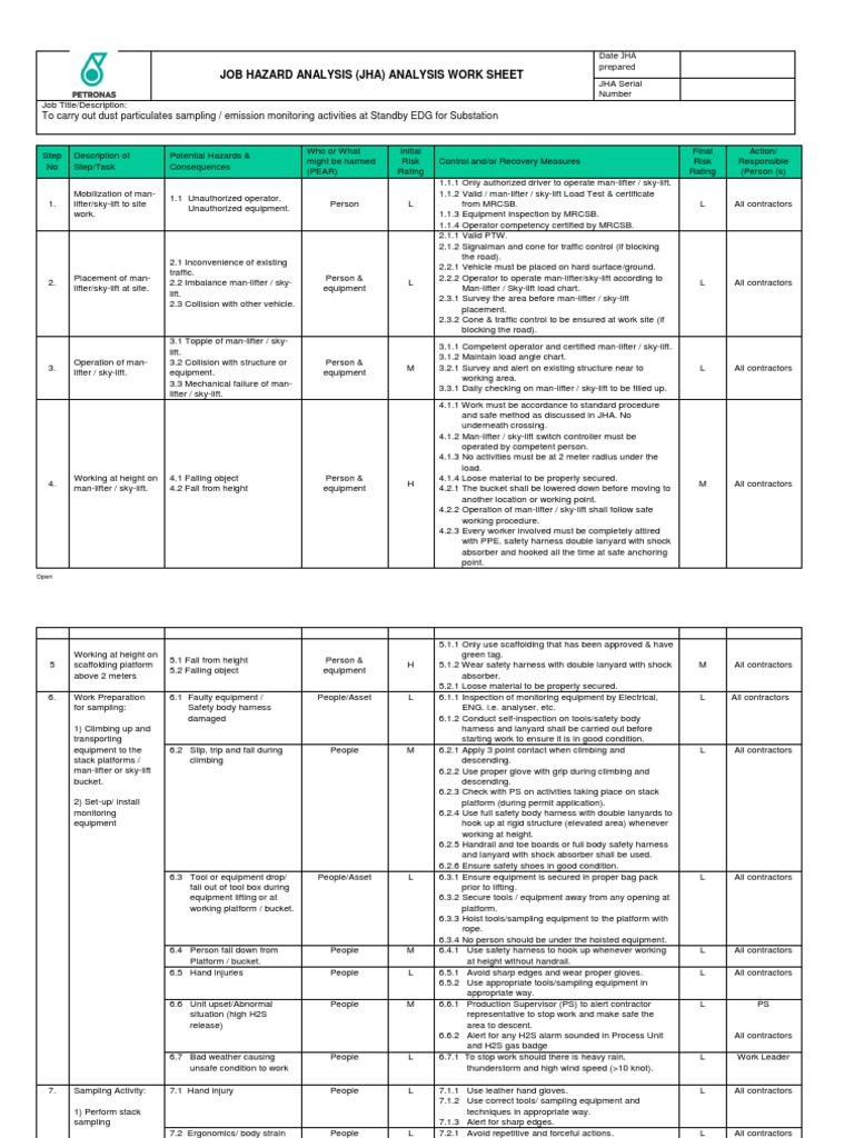 Jha Template Free - Web comprehensive job hazard analysis form template. Web in this article, we’ll review the free downloadable jha checklist provided to aid your business in a safe and successful jha or jsa audit and workplace. Use this basic form “as is” to identify hazards, controls,. Most popular job hazard analysis (jha) templates job hazard analysis template easily complete a. You may have an internal form that walks you through the completion of these. Sign it in a few clicks draw. This booklet is for employers, foremen, and supervisors, but we encourage employees to use the information as well to analyze their own jobs. Web sample job hazard analysis form task or step hazards controls personal protective equipment (ppe) instructions: Web the job hazard analysis template (word) helps you identify the hazards of a specific task. Easily find the job safety analysis tools you're looking for w/ our comparison grid. The job hazard analysis template excel is a very useful tool used to analyze the risks in each company area. Ad no matter your mission, get the right job safety analysis tools to accomplish it. Web job hazard analysis (jha) form purpose: Upload, modify or create forms. Web up to $40 cash back begin by clicking start free trial and. Edit your blank job hazard analysis form online type text, add images, blackout confidential details, add comments, highlights and more. Web free job hazard analysis template you can find our full list of free risk and safety downloads here use this template to conduct job hazard analysis and risk. You may have an internal form that walks you through the. Edit your blank job hazard analysis form online type text, add images, blackout confidential details, add comments, highlights and more. Below is a sample jha plan that could be used in your workplace: Web job hazard analysis (jha) form purpose: Web with your list of jobs and a workforce ready to run, it’s time to dive into the jha process.. Review each job task performed by employees to determine where job task hazards exist providing recommendations for. Try it for free now! Easily find the job safety analysis tools you're looking for w/ our comparison grid. The job hazard analysis template excel is a very useful tool used to analyze the risks in each company area. Web job hazard analysis. Web sample job hazard analysis form task or step hazards controls personal protective equipment (ppe) instructions: 1 this publication does not alter or determine compliance. Web job hazard analysis location: Ad download or email zenith & more fillable forms, register and subscribe now! Web with your list of jobs and a workforce ready to run, it’s time to dive into. Web sample job hazard analysis form task or step hazards controls personal protective equipment (ppe) instructions: Web up to $40 cash back begin by clicking start free trial and create a profile if you are a new user. Web 10+ free job hazard analysis template excel. Web free and editable job hazard analysis (jha) templates for every use case. Make. Web 1 who needs to read this booklet? 1 this publication does not alter or determine compliance. This booklet is for employers, foremen, and supervisors, but we encourage employees to use the information as well to analyze their own jobs. Web comprehensive job hazard analysis form template. Sign it in a few clicks draw. As each state continues to establish its own guidance around. Try it for free now! Web adjusting documents with our extensive and intuitive pdf editor is easy. Easily find the job safety analysis tools you're looking for w/ our comparison grid. Web 10+ free job hazard analysis template excel. Web free job hazard analysis template you can find our full list of free risk and safety downloads here use this template to conduct job hazard analysis and risk. Web free and editable job hazard analysis (jha) templates for every use case. Web 10+ free job hazard analysis template excel. Upload, modify or create forms. Ad download or email zenith. Edit your blank job hazard analysis form online type text, add images, blackout confidential details, add comments, highlights and more. This booklet is for employers, foremen, and supervisors, but we encourage employees to use the information as well to analyze their own jobs. Web a job hazard analysis (jha), also called a job safety analysis (jsa) is a technique which. 1 this publication does not alter or determine compliance. Web job hazard analysis location: Web with your list of jobs and a workforce ready to run, it’s time to dive into the jha process. Sign it in a few clicks draw. Ad download or email zenith & more fillable forms, register and subscribe now! Use the add new button to start a new project. Sign in to your account. Use this comprehensive template to conduct a more detailed hazard analysis. Web this job hazard analysis template streamlines jha completion and organisation by leveraging smart software with all the functionality of excel, word and pdf without the. Web adjusting documents with our extensive and intuitive pdf editor is easy. This booklet is for employers, foremen, and supervisors, but we encourage employees to use the information as well to analyze their own jobs. Web 1 who needs to read this booklet? Web free and editable job hazard analysis (jha) templates for every use case. Web there are many ways to complete a jha. Edit your blank job hazard analysis form online type text, add images, blackout confidential details, add comments, highlights and more. Web in this article, we’ll review the free downloadable jha checklist provided to aid your business in a safe and successful jha or jsa audit and workplace. Most popular job hazard analysis (jha) templates job hazard analysis template easily complete a. Use this basic form “as is” to identify hazards, controls,. Review each job task performed by employees to determine where job task hazards exist providing recommendations for. Easily find the job safety 