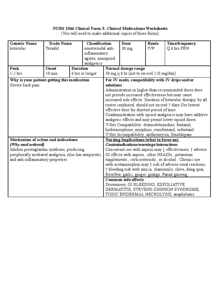 Drug card ketorolac (Toradol) ACTIVE LEARNING TEMPLATES Medication