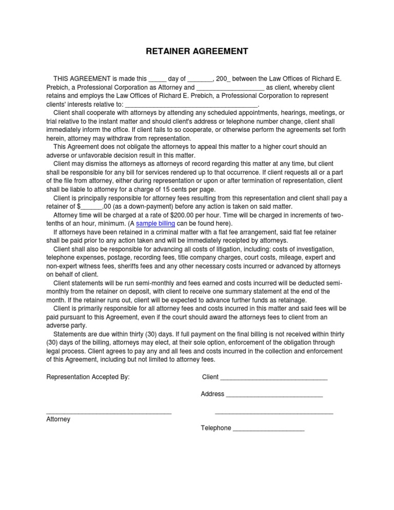 Lawyer Client Agreement Free Printable Documents Retainer agreement