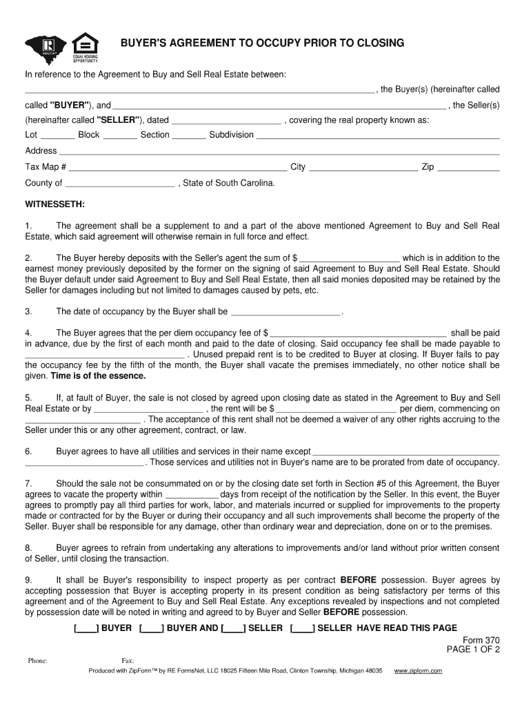Agreement to occupy prior to closing florida 2006 form Fill out & sign
