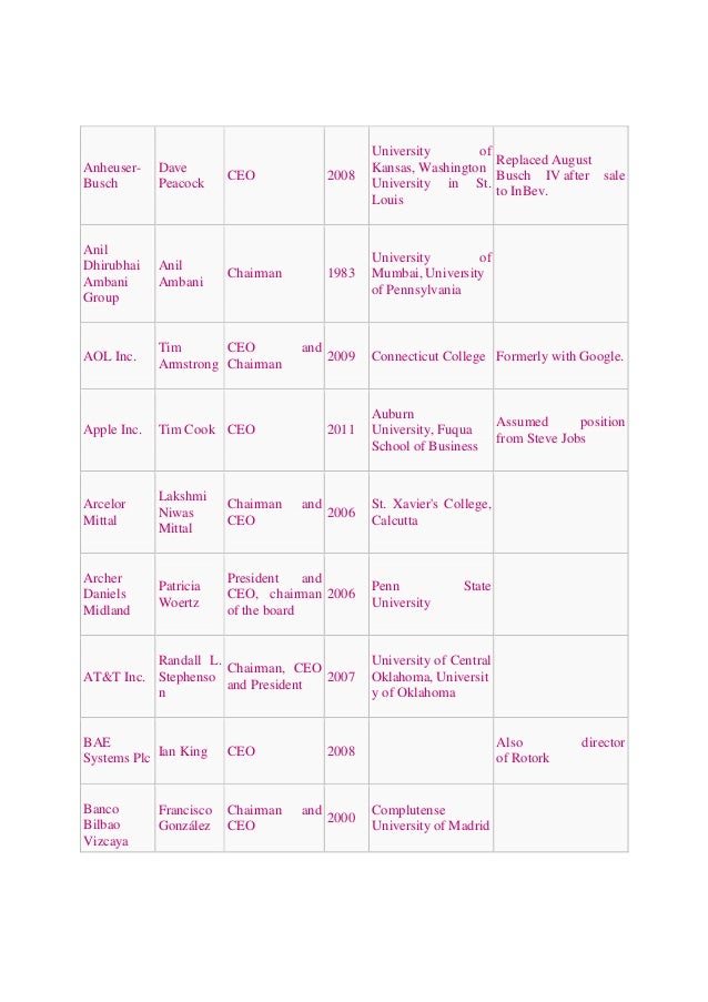 List Of Corporate Officers Template