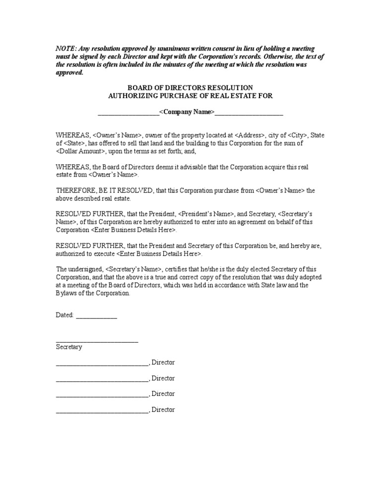 Llc resolution to purchase real estate Fill out & sign online DocHub