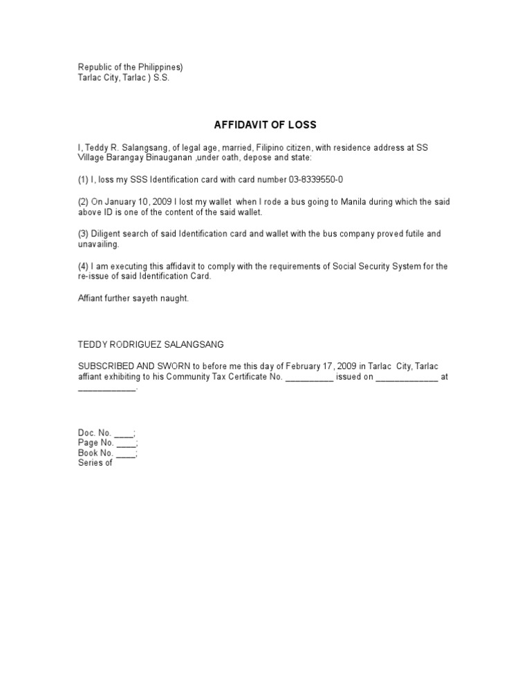 Affidavit Of Loss Template Word Philippines Resume Examples