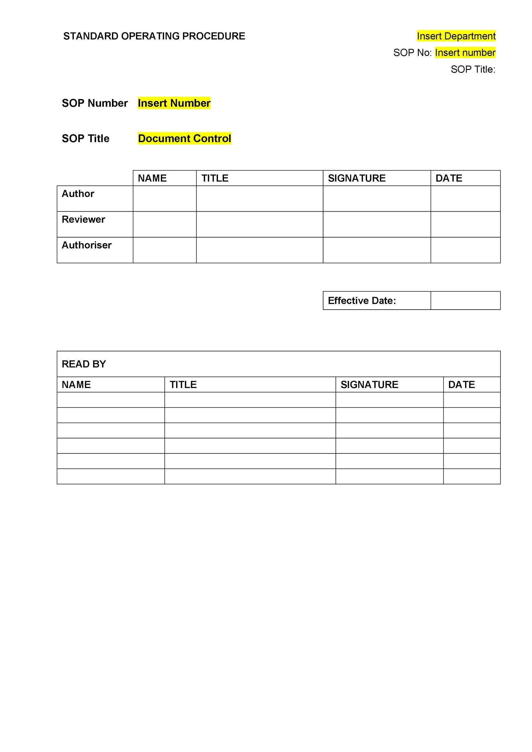 Procedure Template MS Word Standard Operating Procedure & SOP forms