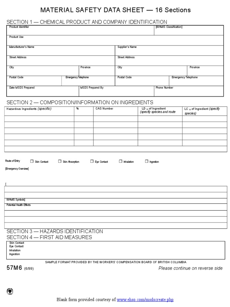 Printable Material Safety Data Sheet Template Printable Templates Free
