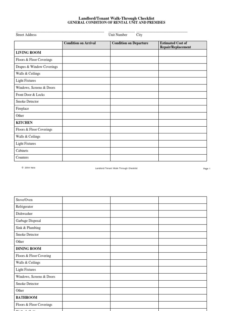 Walk through Checklist Form Fill Out and Sign Printable PDF Template
