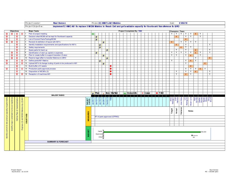 One Page Project Manager Excel Template Download Free Project