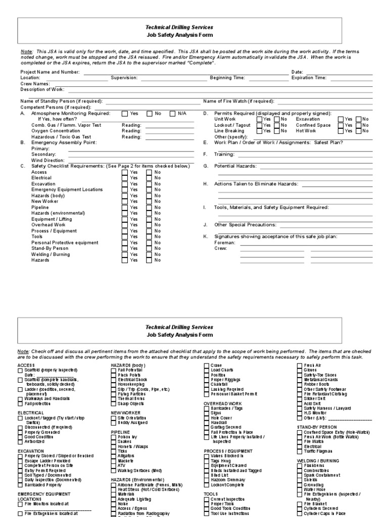 Osha Jsa Template - The following templates must be used for national office alliance agreements, regional and area office alliance agreements, and. Type all required information in the required. This booklet is for employers, foremen, and supervisors, but we encourage employees to use the information as well to analyze their own jobs. Web jsas are available in two formats: Web the job safety analysis template identifies possible hazards that might arise and recommends the safest ways the tasks can be performed. Web osha job hazard analysis template. After the hazards are listed, one can identify controls to mitigate risk. Notify and confirm proper mitigation and/or protective steps taken with your company safety representative/manager before entering any trench or any general excavation. Some individuals tend to go a. Web this downloadable template is part of our free diy company health and safety program collection. Web worker safety and health are important to this industry. The following templates must be used for national office alliance agreements, regional and area office alliance agreements, and. Ad identify, analyze, communicate and reduce the risks associated with any job or task. Use our free and printable osha job hazard analysis form to improve workplace safety. This etool* identifies common. You may download a jsa template in word format and customize the template for your training and other uses in your. This booklet is for employers, foremen, and supervisors, but we encourage employees to use the information as well to analyze their own jobs. Select the web sample in the catalogue. Web the job safety analysis template identifies possible hazards. Web to start the jsa process, select the job or task to be performed. This etool* identifies common hazards and possible solutions to reduce incidents that could lead to injuries or fatalities. Meet & exceed your ehs goals. Web this downloadable template is part of our free diy company health and safety program collection. Web download this template to create. Notify and confirm proper mitigation and/or protective steps taken with your company safety representative/manager before entering any trench or any general excavation. After the hazards are listed, one can identify controls to mitigate risk. Web download job safety analysis (jsa) spreadsheet template. Ad identify, analyze, communicate and reduce the risks associated with any job or task. Jsa ’s or** job. Type all required information in the required. Ad download or email jsa blank & more fillable forms, register and subscribe now! 4.2 of 5 (12 votes) Use our free and printable osha job hazard analysis form to improve workplace safety. Web 1 who needs to read this booklet? Web this downloadable template is part of our free diy company health and safety program collection. Each jsa must be adapted to fit the particular needs of your facility. Web download job safety analysis (jsa) spreadsheet template. Reduce administrative burden of compliance & ehs programs. Web job safety analysis (jsa) is an important analyzing tool that works by finding hazards. Web worker safety and health are important to this industry. Web osha job hazard analysis template. Web jsas are available in two formats: Web alliance program templates agreements. Jsa ’s or** job safety analysis forms** are widely recognized as the. Web 1 who needs to read this booklet? Ad identify, analyze, communicate and reduce the risks associated with any job or task. Web job safety analysis (jsa) process » sample worksheet. Web > occupational safety > job safety analysis (jsa) job safety analysis (jsa) job safety analysis (jsa) defines and controls the hazards of processes, jobs, and procedures. Web download. Notify and confirm proper mitigation and/or protective steps taken with your company safety representative/manager before entering any trench or any general excavation. Web to start the jsa process, select the job or task to be performed. Jsa ’s or** job safety analysis forms** are widely recognized as the. Web 1 who needs to read this booklet? Web alliance program templates. Use our free and printable osha job hazard analysis form to improve workplace safety. Ad download or email jsa blank & more fillable forms, register and subscribe now! Ad identify, analyze, communicate and reduce the risks associated with any job or task. Web a job safety analysis (jsa) is a procedure which helps integrate accepted safety and health principles and. Web worker safety and health are important to this industry. Web job safety analysis (jsa) process » sample worksheet. Web jsas are available in two formats: The following templates must be used for national office alliance agreements, regional and area office alliance agreements, and. Pdffiller allows users to edit, sign, fill and share their all type of documents online This booklet is for employers, foremen, and supervisors, but we encourage employees to use the information as well to analyze their own jobs. Web the job safety analysis template identifies possible hazards that might arise and recommends the safest ways the tasks can be performed. After the hazards are listed, one can identify controls to mitigate risk. Web *sample jsa template and example attached. Web a job safety analysis (jsa) is a procedure which helps integrate accepted safety and health principles and practices into a particular task or job operation. Ad identify, analyze, communicate and reduce the risks associated with any job or task. Web to start the jsa process, select the job or task to be performed. Web > occupational safety > job safety analysis (jsa) job safety analysis (jsa) job safety analysis (jsa) defines and controls the hazards of processes, jobs, and procedures. Web follow our easy steps to get your osha job hazard analysis template prepared rapidly: Select the web sample in the catalogue. Meet & exceed your ehs goals. Jsa ’s or** job safety analysis forms** are widely recognized as