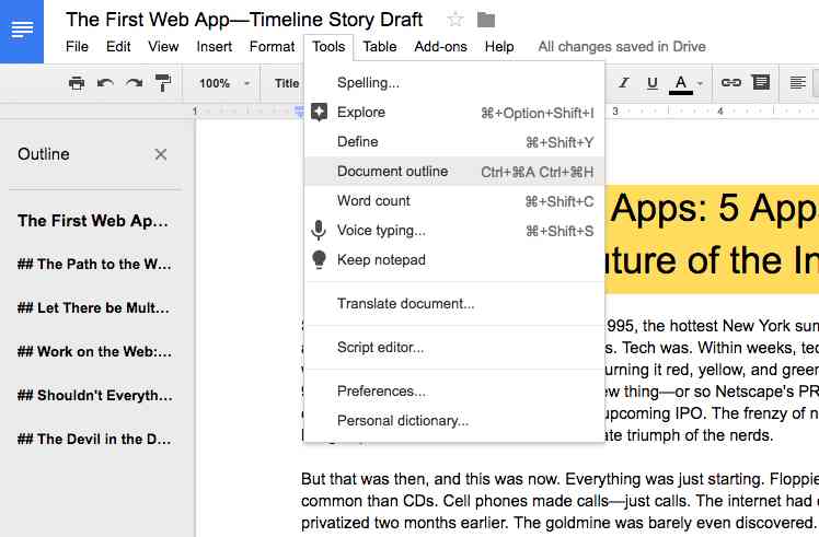 How to Use the Google Docs Outline Tool