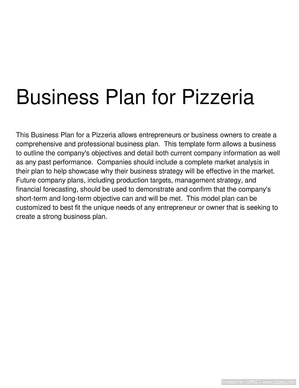 Pizzeria Business Plan Template