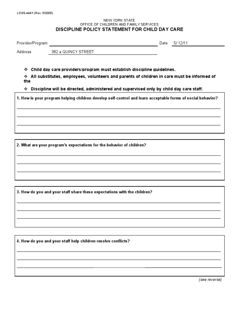 LDSS4441 Discipline Policy Statement for Child Day Care[1]