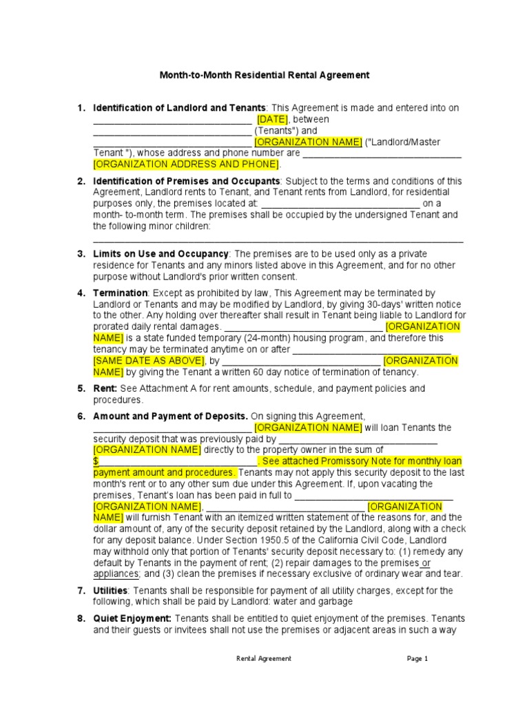 Web The California Month To Month Rental Agreement Form Is 4 Pages Long And Contains: