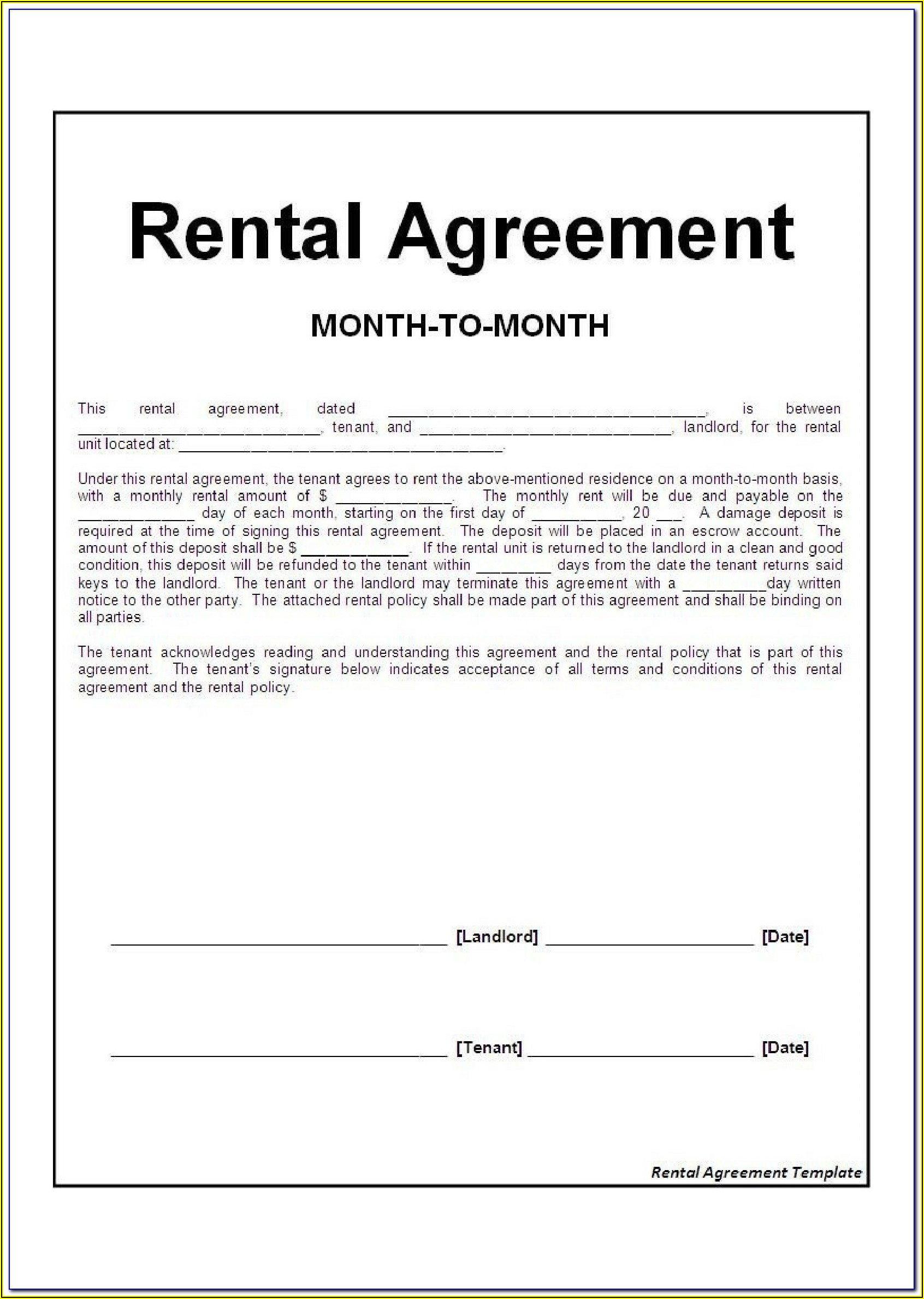 Printable Month To Month Rental Agreement California