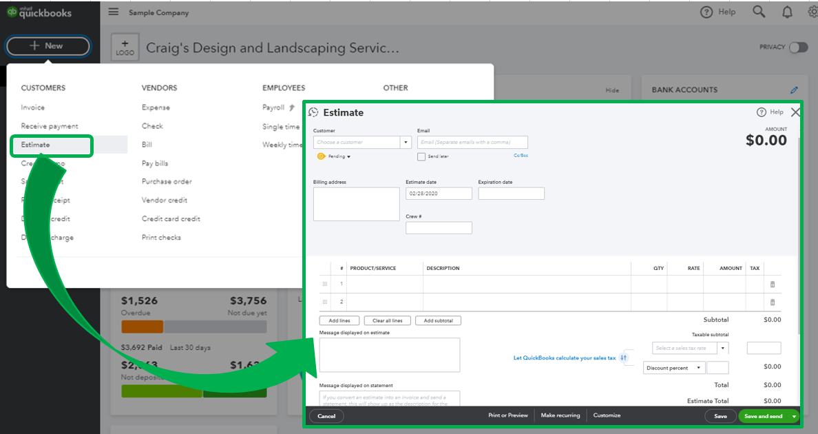 Easy Steps to Create a New Estimate in QuickBooks Online