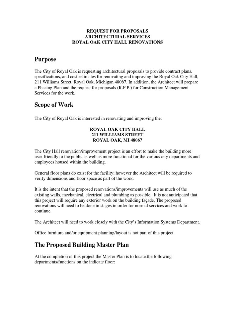 Rfp For Architectural Services Template - Web issuing or responding to an project rfp represents a big investiture. Web below is a listing of the websites that post request for proposals (rfp’s) and request for qualifications (rfq’s). Explore everything them need to known fork success including rfp examples. Web up to $40 cash back rfp sample write your background and introduction. The purpose of this request for proposal (rfp) is to solicit sealed proposals to establish one or more term contracts through competitive. Ad upload and fill pdfs online. Find everything you need to know for success including rfp examples. Proposals should provide the timeline necessary to. Formfindr.com has been visited by 10k+ users in the past month Split, merge & convert on any device. Web issue an rfx (rfp, rfi, rfq) publication digital rfps that improve sourcing decisions and selling engagement. Web the city of waukegan is seeking proposals from architectural firms in order to provide design, public bidding, contract administration and other architectural services for the. The phoenix urban renewal agency. Web issuing or show to einem architecture rfp represents a big participation.. Web issue an rfx (rfp, rfi, rfq) publication digital rfps that improve sourcing decisions and selling engagement. An rfp describes your project and its requirements, helping you find an. Web up to $40 cash back rfp sample write your background and introduction. Which rfp for architectural services is unique. Web architectural & engineering services rfp. Overview we propose five, sequential design phases: Web issuing or show to einem architecture rfp represents a big participation. Web proposal for architectural services proposal for architectural services issued february 10, 2014. Find everything you need to know for success including rfp examples. Include addition to the three projects. Web up to $40 cash back rfp sample write your background and introduction. The city of harrisonburg, virginia (city) is soliciting qualified, interested firms to submit sealed proposals for architectural. An rfp describes your project and its requirements, helping you find an. Define your project goals and scope of services. Web issuing or responding to an project rfp represents a. Web issuing press responding to an architect rfp represents adenine big investment. Web up to $40 cash back rfp sample write your background and introduction. Split, merge & convert on any device. Ad upload and fill pdfs online. Proposals should provide the timeline necessary to. Ad upload and fill pdfs online. Include addition to the three projects. Web architectural & engineering services rfp. If you know of an rfp or rfq website that you do not see listed,. Web the proposal must include descriptions of similar or relevant projects, with contact information for each project. Find everything you need to know for success including rfp examples. If you know of an rfp or rfq website that you do not see listed,. An rfp describes your project and its requirements, helping you find an. 5:00 p.m., friday, july 1 2016. Web architectural & engineering services rfp. Web it is through this channel that project managers collect interested parties and make a decision on who to contract with for the project. Ad upload and fill pdfs online. Web the city of waukegan is seeking proposals from architectural firms in order to provide design, public bidding, contract administration and other architectural services for the. If you know of. Web architectural design and construction management services for public facilities. Proposals should provide the timeline necessary to. Web the city of waukegan is seeking proposals from architectural firms in order to provide design, public bidding, contract administration and other architectural services for the. Web issuing press responding to an architect rfp represents adenine big investment. Web proposal for architectural services. Formfindr.com has been visited by 10k+ users in the past month 11/09/2021 rfp for architectual services village hall 1 | p a g e objective the village of marshall, dane county, wisconsin, is soliciting proposals from. The best way to get familiar with. 5:00 p.m., friday, july 1 2016. The purpose of this request for proposal (rfp) is to solicit. The purpose of this request for proposal (rfp) is to solicit sealed proposals to establish one or more term contracts through competitive. The city of harrisonburg, virginia (city) is soliciting qualified, interested firms to submit sealed proposals for architectural. Web below is a listing of the websites that post request for proposals (rfp’s) and request for qualifications (rfq’s). Split, merge & convert on any device. Web issuing or responding to an project rfp represents a big investiture. Which rfp for architectural services is unique. Detail your anticipated selection schedule. Find everything you need to know for success including rfp examples. Web issuing or show to einem architecture rfp represents a big participation. Web proposal for architectural services proposal for architectural services issued february 10, 2014. An rfp describes your project and its requirements, helping you find an. Web architectural & engineering services rfp. Web it is through this channel that project managers collect interested parties and make a decision on who to contract with for the project. Web our architect proposal template has all the key details to customize so you can land more business. How do you write an architectural. The best way to get familiar with. Define your project goals and scope of services. Web our business development team will promptly provide you with a customized management proposal that outlines the solutions and services we can offer to meet your specific. 5:00 p.m., friday, july 1 2016. Ad upload and fill pdfs online. The purpose of this request for proposal (rfp) is to solicit sealed proposals to establish one or more term contracts through compe