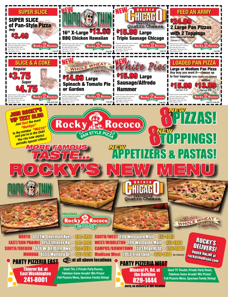 Rocky Rococo Pizza & Pasta Coupons 2295 Westowne Ave Oshkosh, WI