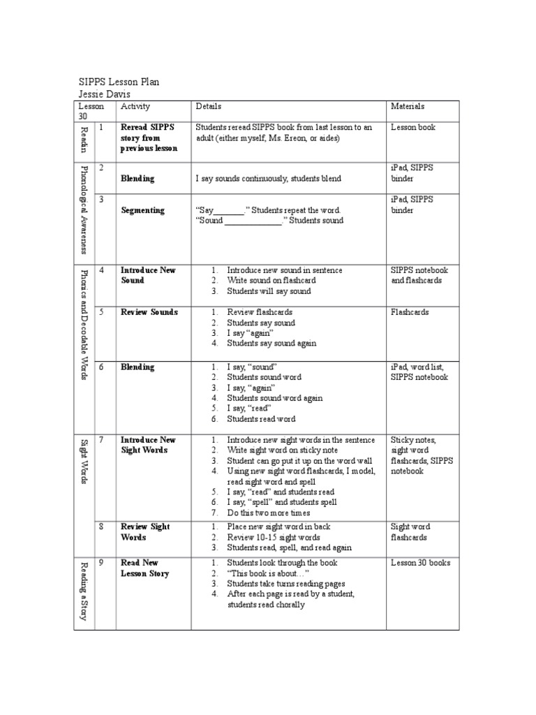 sipps lesson plan 5417 Phonics Learning Methods
