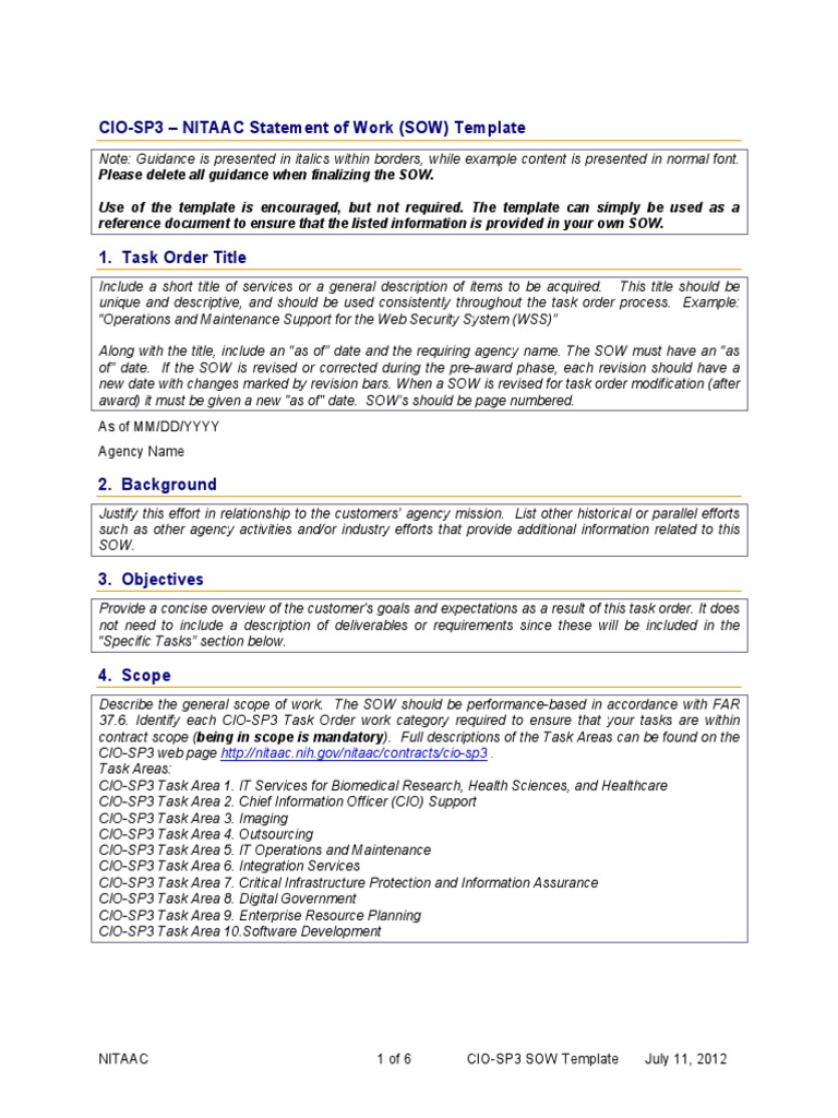Sow Template Word - Web the sow acronym statement of work template is a simple formal document with all the details of a given project or work. Web statement of work (sow) template. Web the template provides a basic standard outline for the sow and sample paragraph language. A scope of work is a detailed. Avoid errors in your statement of work. Web in project management, a statement of work (sow) is an agreement between a client and an agency, contractor, or service provider that defines what’s included within. Web use this free statement of work (sow) template to identify and define work activities, deliverables, and timetables for a specific job. It's a google doc, but you can download it in other formats like microsoft word and pdf. Web samples & examples (sow) streamline your project management process with our collection of free statement of work (sow) templates, available in both word and excel. Ad create a statement of work & assure your transactions are legal: Ad create a statement of work & assure your transactions are legal: Web it defines the boundaries of the project and typically becomes a part of the contract. In most instances, the statement of work is used to create contractual obligations. This template has been provided as a streamlined approach to assist you in drafting your information technology work. Web. Web the template provides a basic standard outline for the sow and sample paragraph language. Web in project management, a statement of work (sow) is an agreement between a client and an agency, contractor, or service provider that defines what’s included within. Ad create a statement of work & assure your transactions are legal: Avoid errors in your statement of. A scope of work is a detailed. Web statement of work (sow) template. Your sow should be tailored to meet the needs of your specific requirement. How to plan everything from strategy to content creation to implementation. Government contracts sow template for free ms word/google docs. Dos to write sow document. What you need to include in order to create a concise statement of work. This template has been provided as a streamlined approach to assist you in drafting your information technology work. Ad outline your project with a customizable statement of work. Answer simple questions to create a customized statement of work. Web samples & examples (sow) streamline your project management process with our collection of free statement of work (sow) templates, available in both word and excel. Ad outline your project with a customizable statement of work. Web find a variety of free, downloadable statement of work (sow) and scope statement templates for microsoft excel and word, specifically for project management,.. Web in project management, a statement of work (sow) is an agreement between a client and an agency, contractor, or service provider that defines what’s included within. Avoid errors in your statement of work. Include explicit details regarding the job, payment,. Web find a variety of free, downloadable statement of work (sow) and scope statement templates for microsoft excel and. Web it defines the boundaries of the project and typically becomes a part of the contract. Avoid errors in your statement of work. Web what is a statement of work template? Web find a variety of free, downloadable statement of work (sow) and scope statement templates for microsoft excel and word, specifically for project management,. Web in project management, a. Web in project management, a statement of work (sow) is an agreement between a client and an agency, contractor, or service provider that defines what’s included within. Ad outline your project with a customizable statement of work. It's a google doc, but you can download it in other formats like microsoft word and pdf. Web sow template make a copy. Web in project management, a statement of work (sow) is an agreement between a client and an agency, contractor, or service provider that defines what’s included within. Web use this free statement of work (sow) template to identify and define work activities, deliverables, and timetables for a specific job. Web statement of work (sow) template. Avoid errors in your statement. Web it defines the boundaries of the project and typically becomes a part of the contract. Web what is a statement of work template? Web the sow acronym statement of work template is a simple formal document with all the details of a given project or work. A scope of work is a detailed. Web a statement of work is. It's a google doc, but you can download it in other formats like microsoft word and pdf. Web in project management, a statement of work (sow) is an agreement between a client and an agency, contractor, or service provider that defines what’s included within. Your sow should be tailored to meet the needs of your specific requirement. Web find a variety of free, downloadable statement of work (sow) and scope statement templates for microsoft excel and word, specifically for project management,. Avoid errors in your statement of work. Ad create a statement of work & assure your transactions are legal: Web sow template make a copy of this statement of work template. Web what is a statement of work template? Avoid errors in your statement of work. In most instances, the statement of work is used to create contractual obligations. Ad create a statement of work & assure your transactions are legal: Ad outline your project with a customizable statement of work. Typically, sow acts like an. A statement of work template is a fillable format that you can download, print, and fill out to record the specifics of your project. Government contracts sow template for free ms word/google docs. Include explicit details regarding the job, payment,. Web statement of work (sow) template. A sow template helps to set out the necessary tasks so that they’re formulated into actionable. How to plan everything from strategy to content creation to i