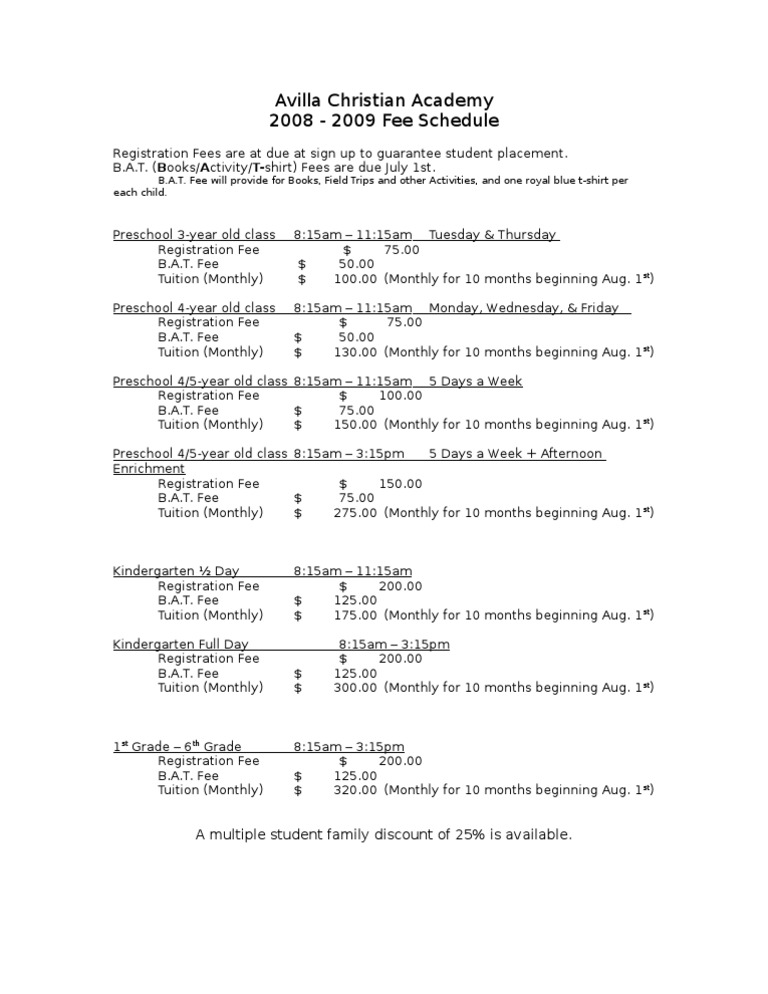 Fee Schedule Template Check more at https//nationalgriefawarenessday