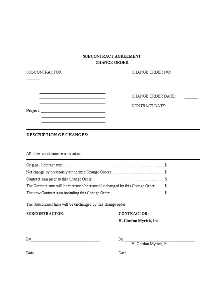 Subcontractor Change Order Template
