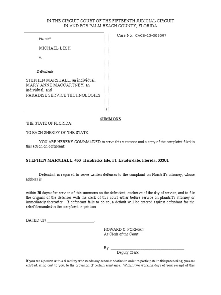Florida Commercial Eviction Summons Form Form Resume Examples