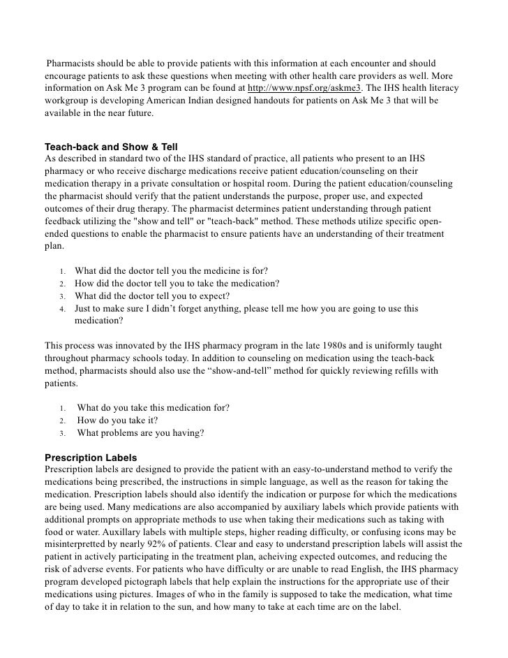 Pharmacy and health literacy handout