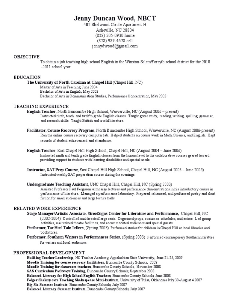 resume University Of North Carolina At Chapel Hill Teachers