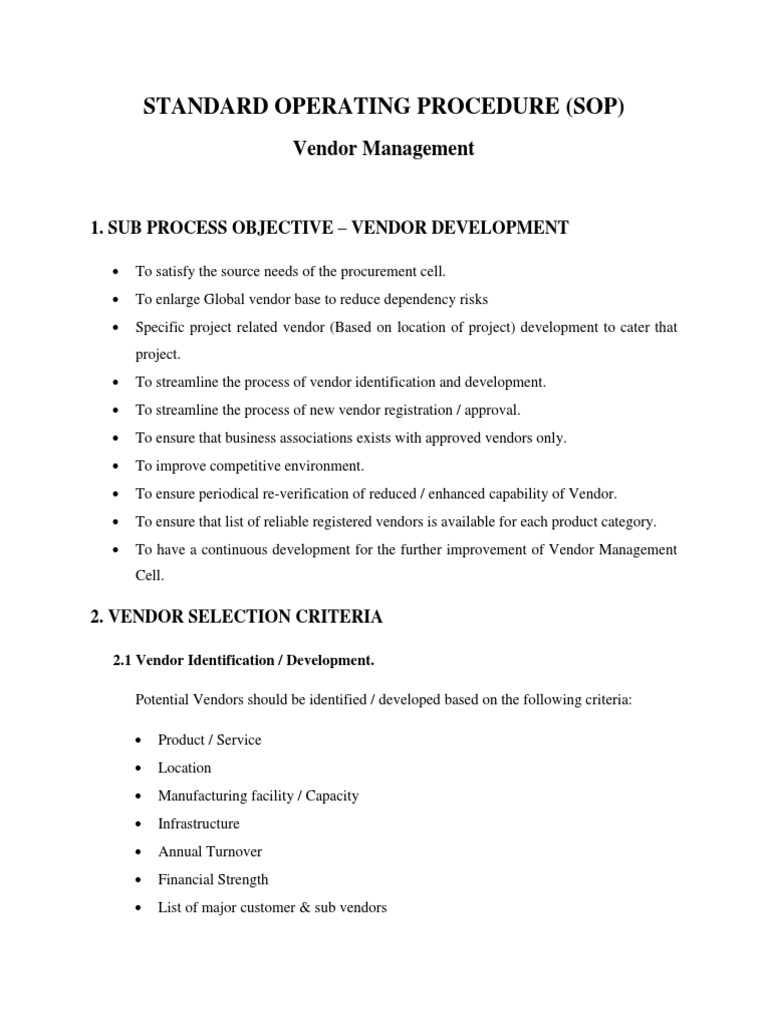 Vendor Management Sop Template