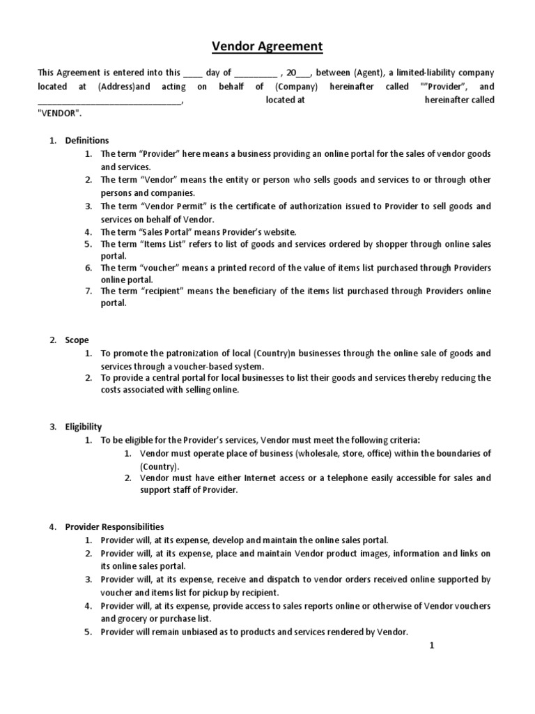 A Vendor Agreement Is A Legally Binding Document Between A Vendor And A Customer That Outlines The Terms Of A Specific Service Or.