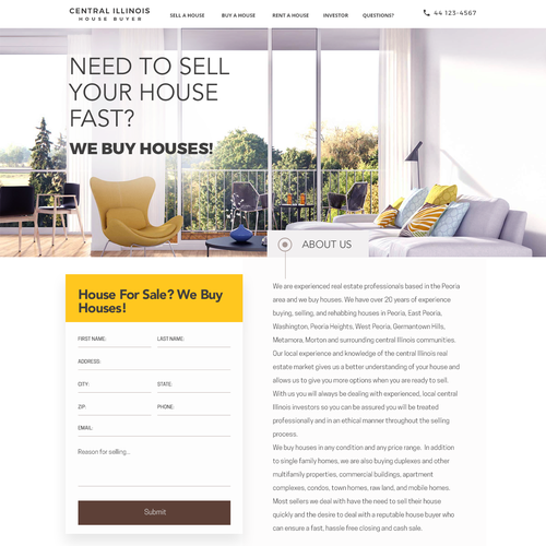 Home Page/Landing Page Design for a We Buy Houses Website Landing